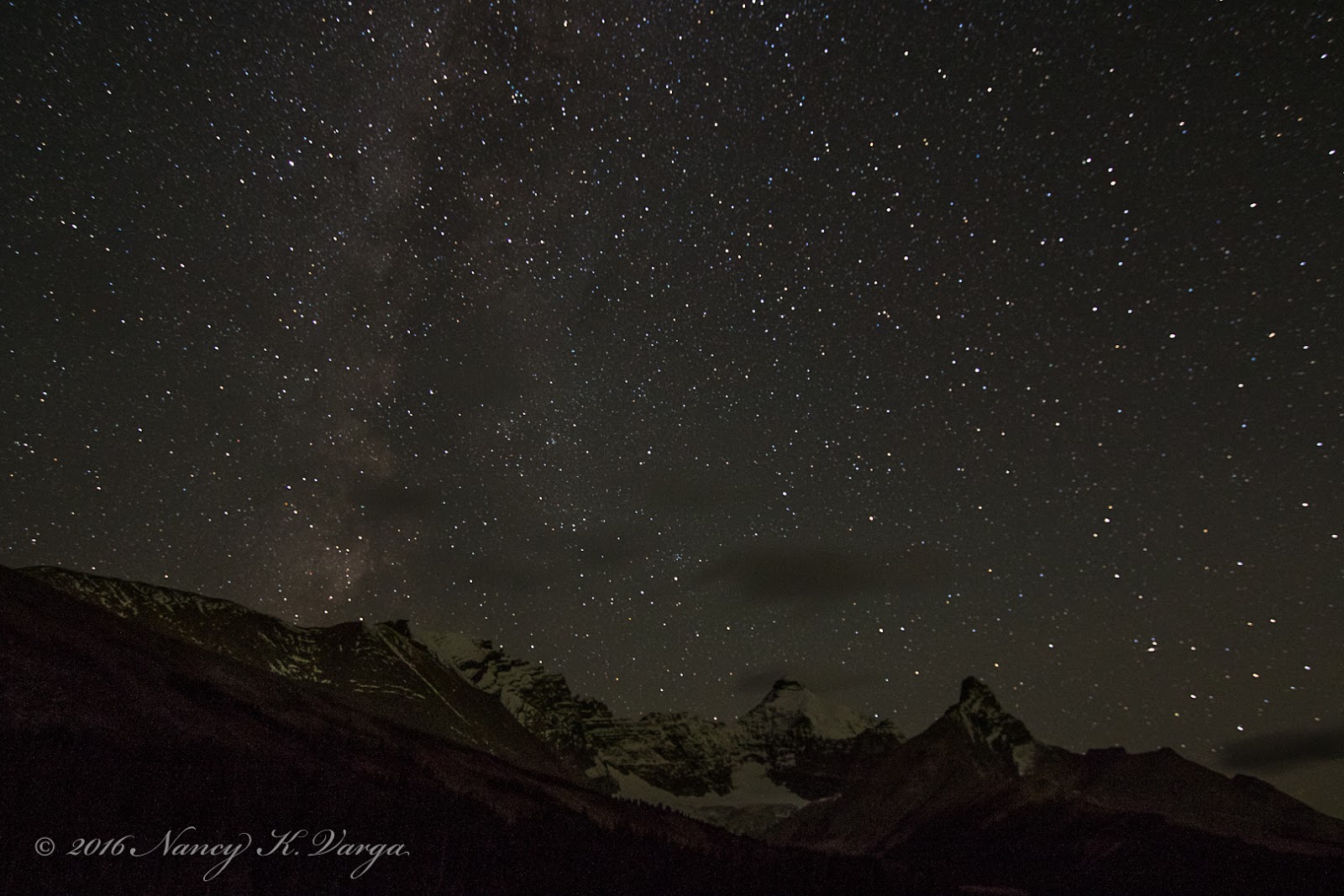 After almost two hours of viewing and photographing we headed South toward our lodging in Banff. About 45 minutes later, Mark pulls off the road once again. We set up for another Light Show which I think was better than the first one.